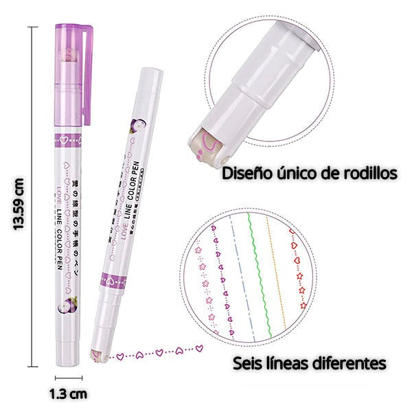 Diviértete con este marcador de rodillo especialmente diseñado para crear varias líneas de marcas elegantes con un solo tirón sin problemas. Utilízalo para temas de estudio, arte o simplemente para resaltar tus frases favoritas. ✨