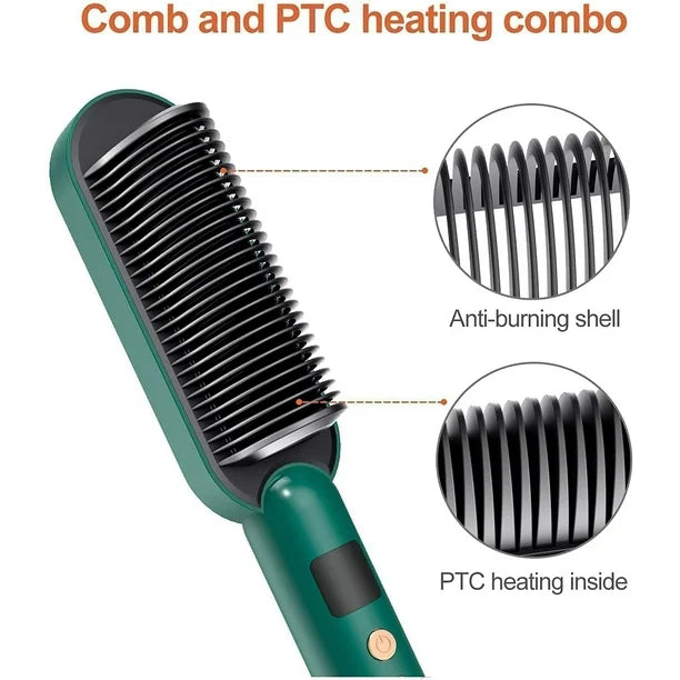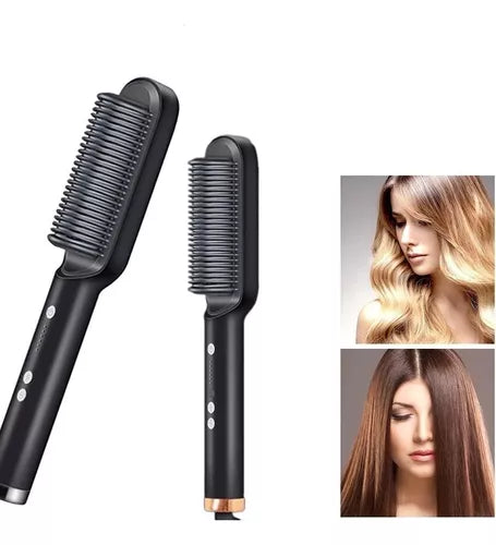 Descubre cómo nuestro cepillo alisador puede transformar tu cabello. Imagina poder tener un cabello liso y brillante todos los días sin tener que ir al salón o pasar horas con la plancha, Nuestro peine será tu arma secreta contra el friz. Su tecnología suaviza cada mechón aportándole brillo y suavidad.