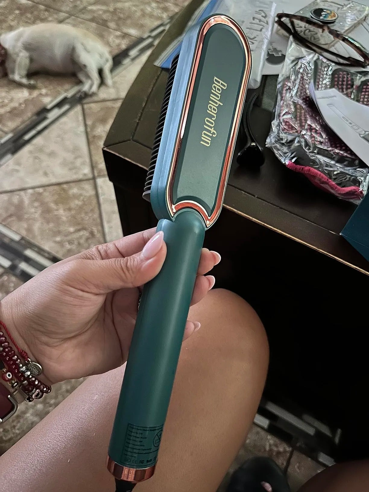 Ahorra tiempo y dinero❗Con nuestro peine podrás peinar, cepillar y alisar tu cabello al mismo tiempo de una forma rápida y cómoda.Además, gracias a su tecnología de cerámica avanzada con queratina y aceite de almendras, el Cepillo Alisador protegerá tu cabello del calor,lo hidrata y lo nutre, aportándote un acabado suave y sedoso en minutos. IDEAL PARA TODO TIPO DE CABELLO 🥰