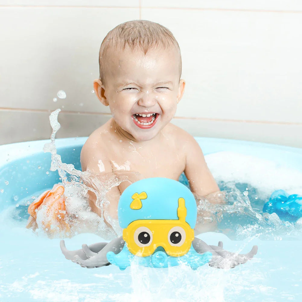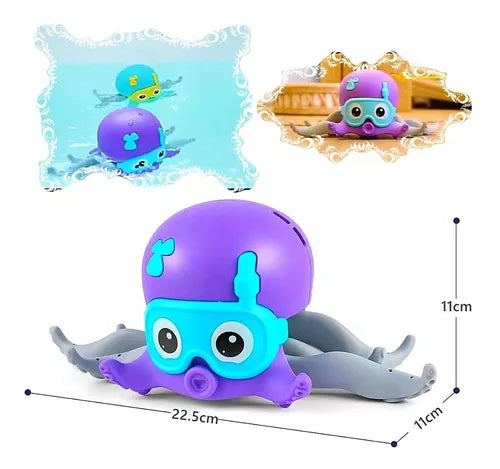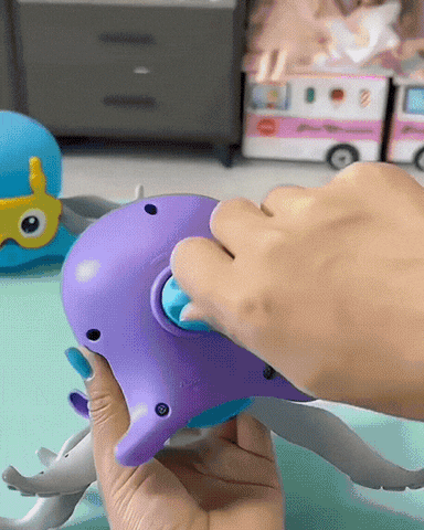 con este hermoso juguete hara que tus hijos amen ducharse y facilita el baño, ya que el pulpo se puede meter al agua sin miedo alguno de que se dañe, flota en el agua y se mueve de un lado a otro sin ningun problema.